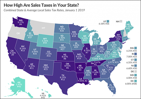首先我們來了解一下美國的消費稅是如何計算的,雖然在美國各地的消費稅都不同,到那時基本上都是由兩個部分組成即綜合消費稅=地方消費稅(Local Sales Tax)+州消費稅 (State Sales Tax);所以如果你選擇的是免稅倉庫,相當于州消費稅為零,換言之你可以省掉這一筆錢,比起非免稅倉庫要更加劃算一些。美國一共有45個州征收消費稅,但是只有5個州免州消費稅,它們分別是:特拉華州 Delaware、蒙大拿州 Montana、新罕布夏州 New Hampshire、俄勒岡州 Oregon、阿拉斯加州 Alaska。